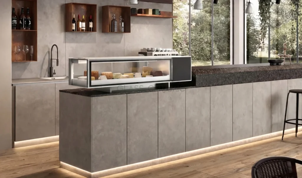 Zona de bar con aplicaciones cerámicas en muebles y revestimiento de zona de fregadero
